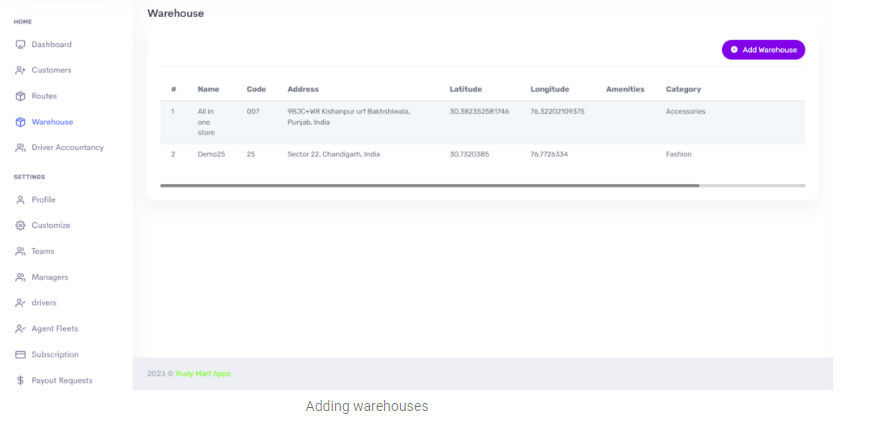 One centralized point is connected to other delivery points, which means numerous warehouses are created, and once an order is received, delivery is done from the nearby warehouse. Admin can create a warehouse manager to manage warehouse tasks, which can further assign tasks to the agents.